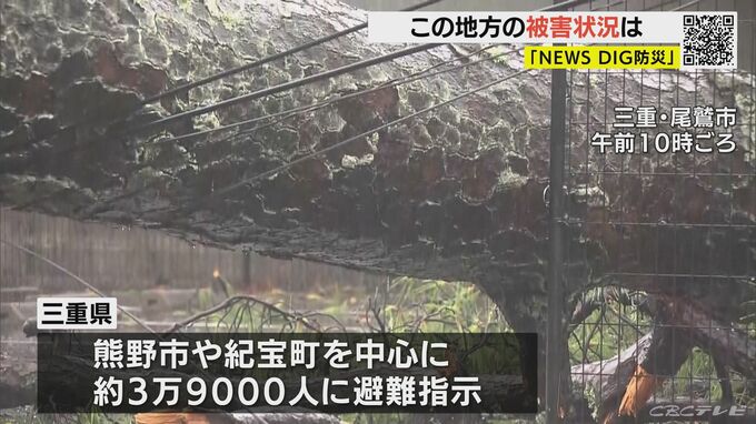 三重県内では、南部の熊野市や紀宝町を中心に約3万9000人に避難指示が出されています。