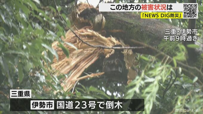 伊勢神宮近くの国道23号では木が倒れました、風の影響とみられています。