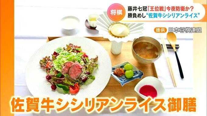 期待が高まる「八冠制覇」へ、藤井七冠が「王位」防衛で弾みをつけるか。16日の勝負めしは「佐賀牛シシリアンライス御膳」。これは、ライスの上に炒めた肉やサラダをのせ、マヨネーズをかけたもので1970年代に佐賀市の喫茶店で生まれたご当地グルメです。また、午前のおやつは「うれしの夏まんじゅう」でした。