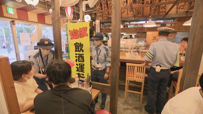 名古屋の繁華街で、お酒を楽しむ客たちに警察官が飲酒運転をしないよう呼びかけました。