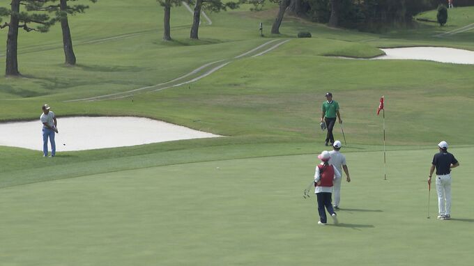 21日は風がなく強い日差しが照りつける中、プロとアマチュアのゴルファー合わせて116人が出場。熱戦が繰り広げられています。