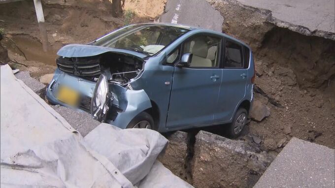 「急に道路に穴が開いて…」国道が陥没 軽乗用車が数メートル下に転落して大学生3人搬送 局地的に降った激しい雨の影響か