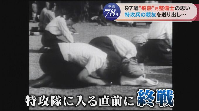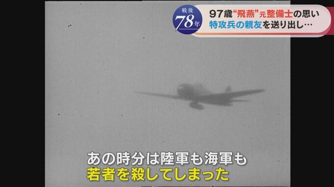 「思い出したくない。誇らしく喋りたくない。一番仲が良かったアイツが特攻隊で逝ってしまった。本当に泣いて涙を流して握手した『気をつけて行ってこいよ』と送り出した覚えがある。あの時分は陸軍も海軍も若者を殺してしまった」