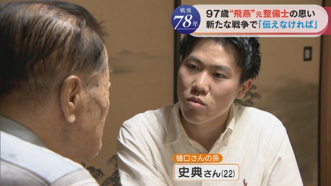 まず伝える事にした相手が、大阪に住む大学生の孫、史典(ふみのり)さん、22歳。祖父である樋口さんは、戦争体験や平和のありかたについて自分なりに話をします。