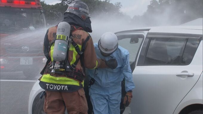 競技中にラリーカーが燃えた想定の訓練 水を使わずに消火できる“耐熱シート” 11月の世界選手権に向け全国の自治体で初めて愛知・豊田市で導入 2023年8月22日(火) 16:54 国内 11月に開催される世界ラリー選手権「ラリージャパン」。事故が起きた際の消火訓練が行われました。この訓練は、11月に愛知県と岐阜県で行われるFIA世界ラリー選手権「フォーラムエイト・ラリージャパン2023」に向…