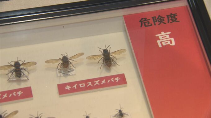 また、15種類のハチが危険度の高い順に並べられている他、エイのトゲの標本などもあり、訪れた夏休み中の子どもたちが珍しそうに見ていました。