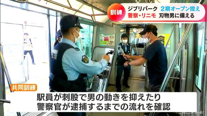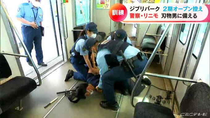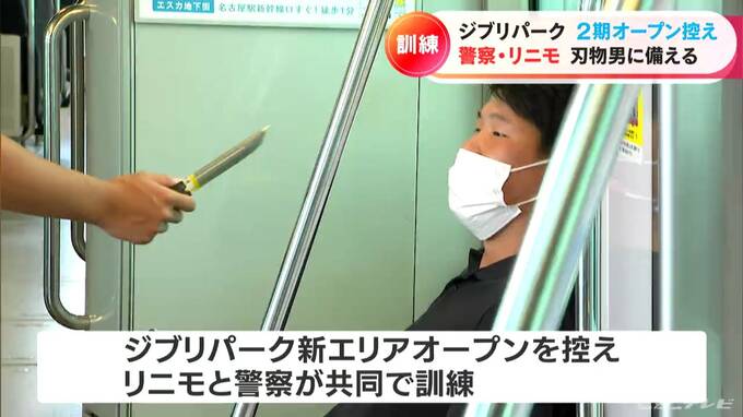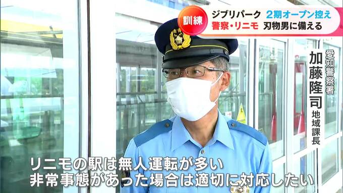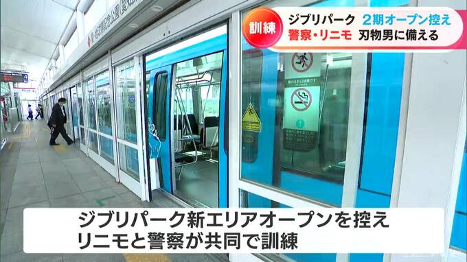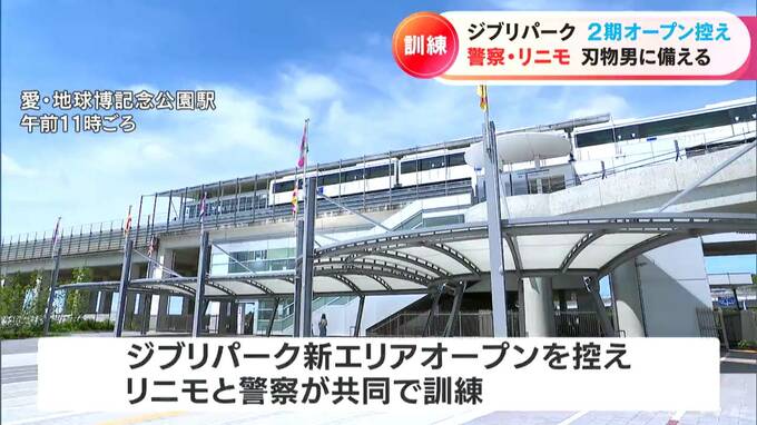 ことし11月のジブリパーク新エリアオープンを控え、最寄りの愛知・長久手市のリニモ「愛・地球博記念公園駅」で、リニモと警察が合同で刃物を持った男に対応する訓練を行いました。