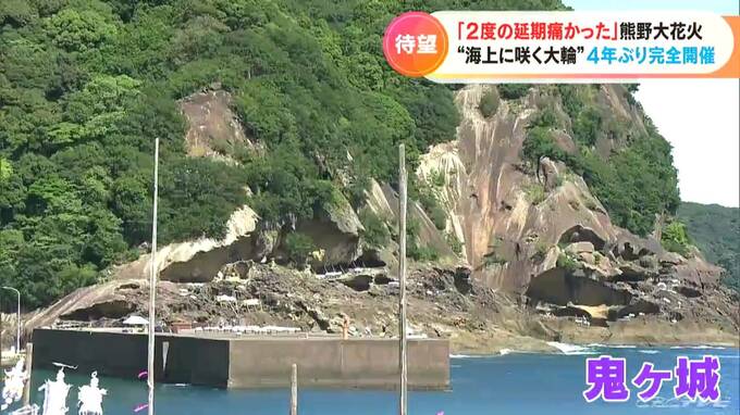 見所は世界遺産に登録される岩場=鬼ヶ城から扇状の花火が打ち上げられる、その名も「鬼ヶ城大仕掛け」です。