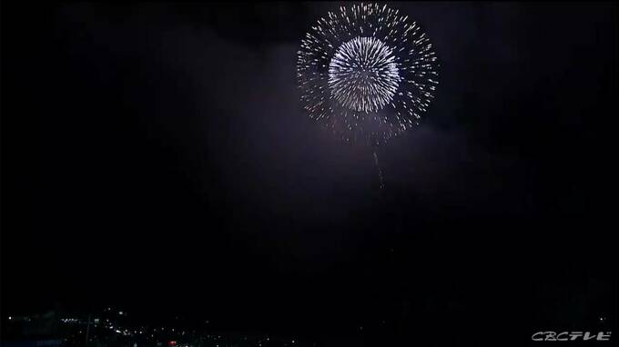 見物客から手拍子が沸き起こる中、会場に「ただいま点火しました」とのアナウンスが流れたのに続いてカウントダウンが始まり…、直径600メートルの巨大な花火が。