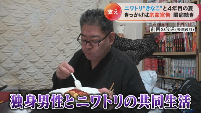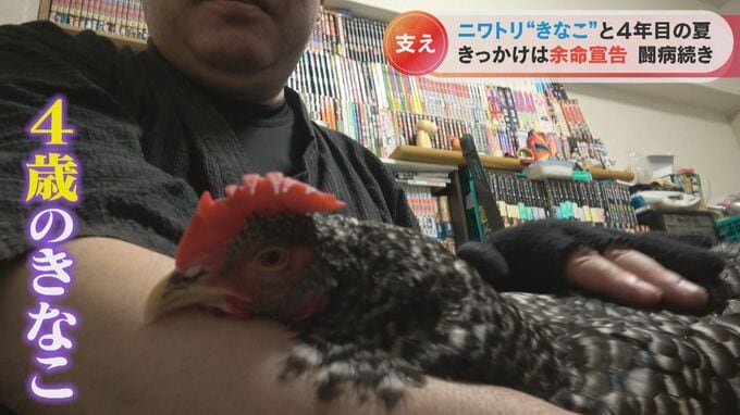 なぜ、ニワトリと一緒に暮らすようになったのか、その裏に抱えている思いとは何なのか。一緒に暮らし始めて4年目の夏を迎えた、近藤さんとニワトリの“きなこ”の現在の生活に密着しました。
