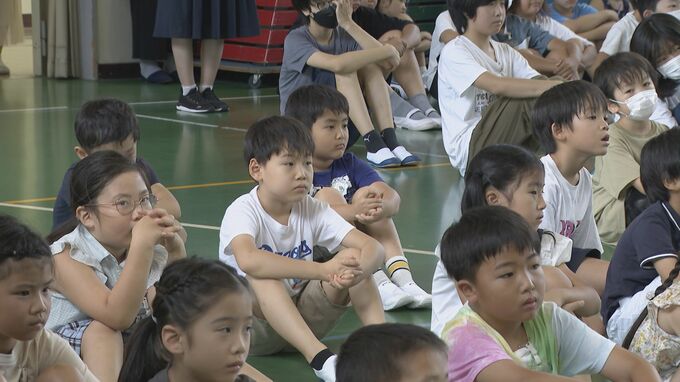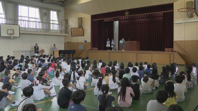 児童の代表が2学期の目標を発表すると、橋本新校長は「行事を通して、思い出いっぱいの2学期にしてください」などと話しました。