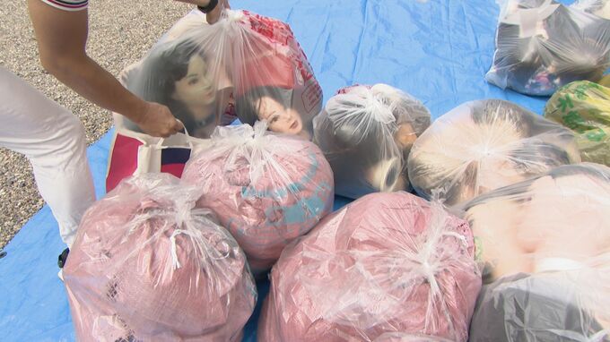 髪供養は、美容師らが技術向上に使ったカツラや櫛などの道具に感謝しようと名古屋美容協議会が行ったものです。大須観音の境内には使い古した大量のくしやウィッグなどが持ち込まれ、参加者はウイッグが並べられた祭壇に向かって焼香し、手を合わせていました。