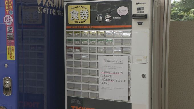 「こちらの食堂、ことし7月から当面の間休業と書かれていて、厨房も明かりがついておらず真っ暗です」