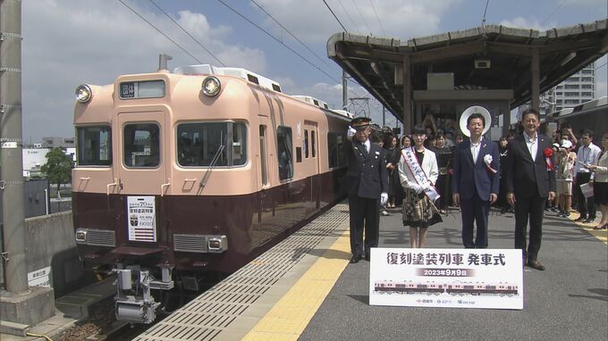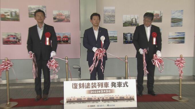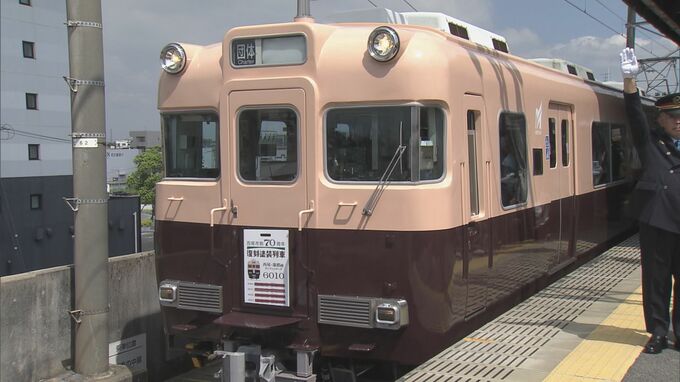 愛知県西尾市の市制70周年を記念して、名鉄西尾・蒲郡線で復刻塗装列車が運行しました。