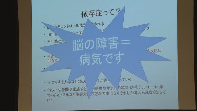 セミナーではギャンブル依存症の治療にあたっている医師の講演のほか、ギャンブル依存症と闘っている男性が実体験を語りました。
