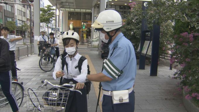 「取り締まる」から作戦変更です。ヘルメットを着用した自転車利用者を「ほめる」取り組みが岐阜市で行われました。
