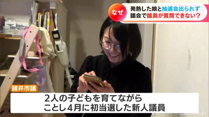 抽選会前日の夜遅くに2歳の娘が発熱。朝になっても熱が下がらず、遠方に住んでいる両親を頼ることも保育園に預けることもできず、夫の仕事も休みの都合がつかなかったため、諸井市議は娘を連れて登庁し、抽選会が始まる15分前に子連れで参加したいと議長らに相談しましたが、認められませんでした。