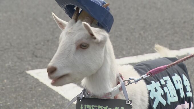 もらった委嘱状はすぐ食べた ヤギが1日“メ~とう警察署長” 「お金渡しちゃだメ~」 名古屋・名東警察署 2023年9月15日(金) 12:27 国内 名古屋の名東警察署の一日署長にヤギが就任し、鳴き声にかけて『お金渡しちゃだメ~』と特殊詐欺の防止を呼びかけました。(名東警察署・花木竜彦署長)「委嘱状もも様。あなたを一日“メ~とう”警察署長に委嘱し…