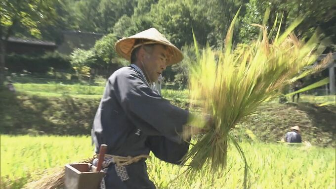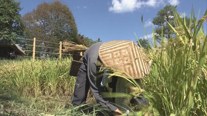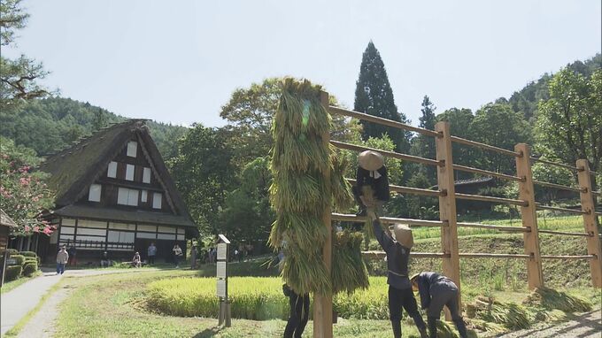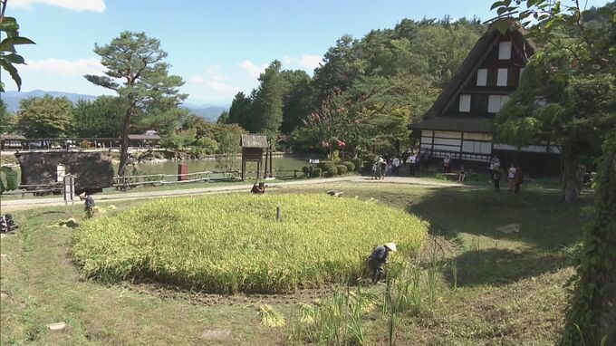 岐阜県高山市の観光施設では園内の「車田」で稲刈りが行われました。