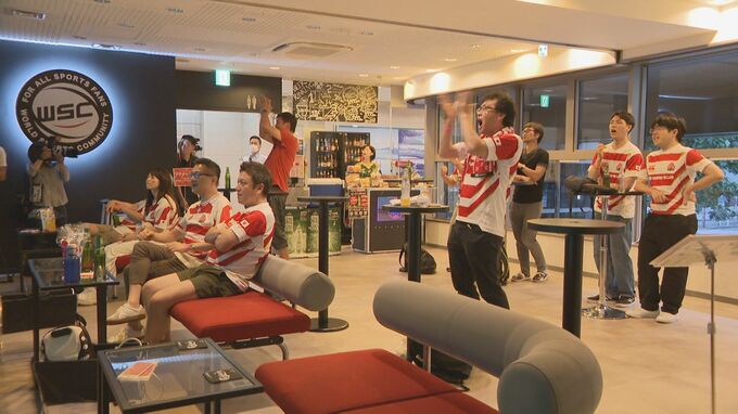 盛り上がりをみせるラグビーワールドカップフランス大会。日本代表を応援しようと名古屋市中区のスポーツバーには早朝からファンが集まり、プレーに一喜一憂しながらフランスに届けとばかりに熱い応援を続けました。