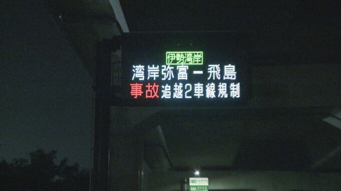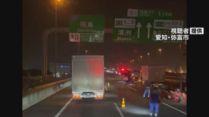 警察によりますと19日午前0時前、愛知県弥富市の伊勢湾岸自動車道上り、湾岸弥富インター付近で、追い越し車線を逆走してきた乗用車が、中型トラックと衝突しました。