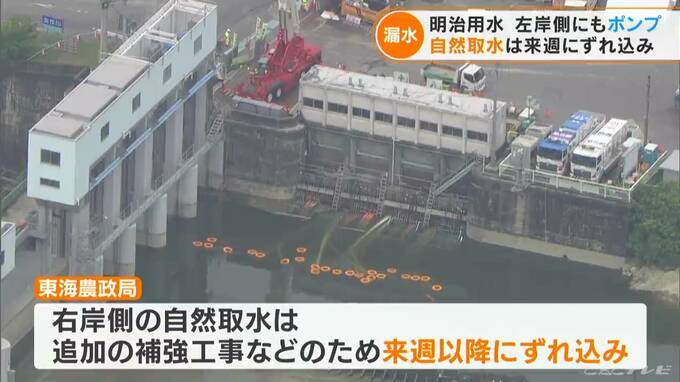 一方、右岸側の取水口からの自然取水に関しては、18日、19日頃に始められる予定でしたが、東海農政局によりますと、水をせき止める鉄の板の追加の補強工事などが必要になったため、20日以降にずれ込むということです。