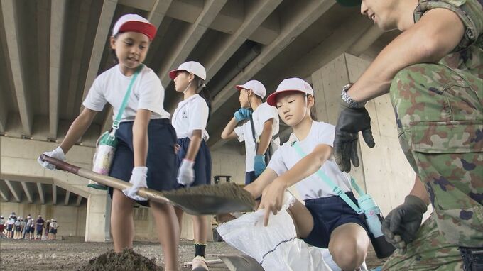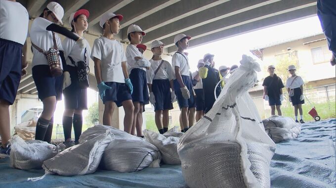 美濃加茂市立太田小学校。28日の朝に4年生の児童約90人が体験したのは、土のう作りです。災害への備えについて学ぶ授業の一環で、児童は消防団や自衛隊員らに土のうの作り方を学び、実際に手に持って運ぶなど重さを体感しました。28日、この授業が行われた理由は…
