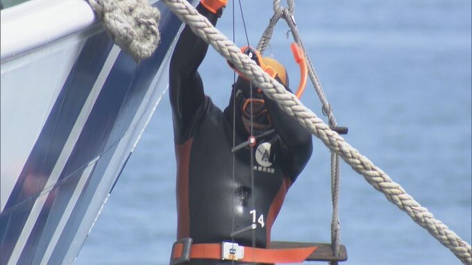 28日は鳥羽海上保安部と、三重県内などの消防の水難救助隊に所属する潜水士20人が参加。船にぶら下がって進んだり、15キロの重りを腹の上に抱えて泳いだりし、参加者らは時おり苦しそうな表情を見せながらも声を掛け合って、訓練に取り組んでいました。