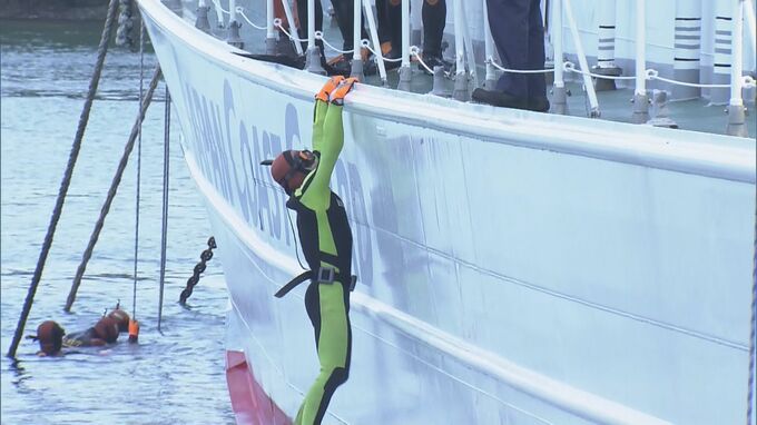 水難救助にあたる、海上保安庁と消防の潜水士が合同訓練を行いました。