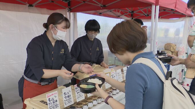 会場には炊きたての「愛ひとつぶ」が用意され、訪れた人たちは鮭フレークやなめ茸など、10種類用意されたごはんのお供と一緒に、おいしいお米を味わうことができます。