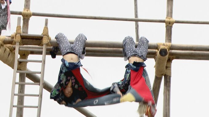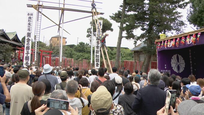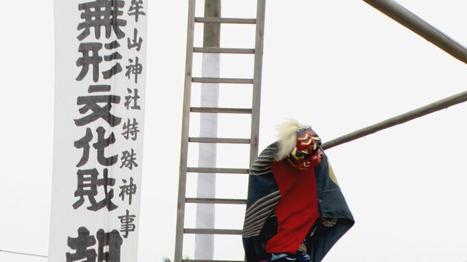 愛知県の無形民俗文化財に指定されている神事「朝倉の梯子獅子(あさくらのはしごじし)」が知多市の神社で行われました。
