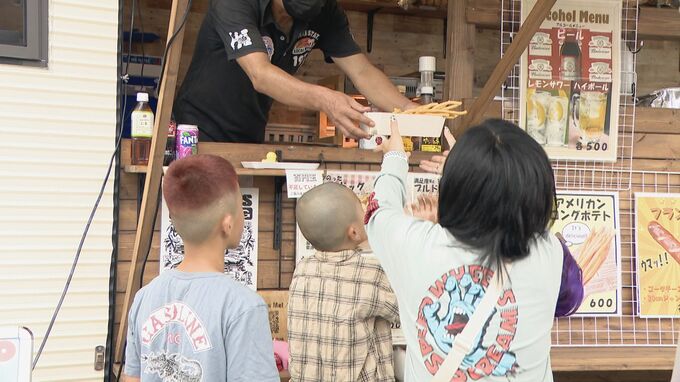 また、神社近くの名鉄・朝倉駅の広場ではこの神事にあわせキッチンカーの出店、土産物の販売なども行われました。