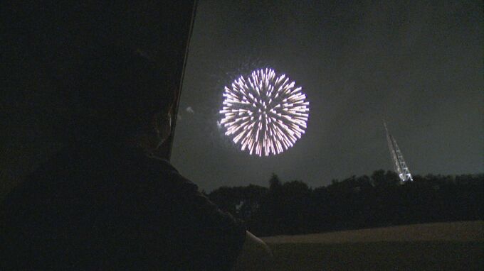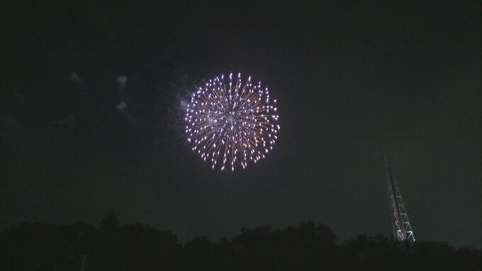 混雑を避けるため、打ち上げ場所は一般非公開で行われ、実行委員の関係者やその家族ら150人ほどが中学校のグラウンドに集まり、色鮮やかな花火を楽しみました。