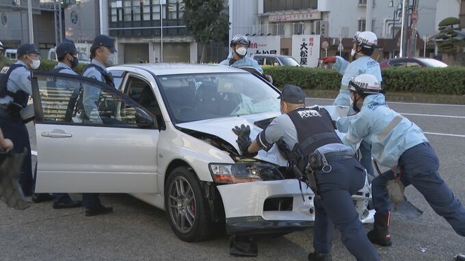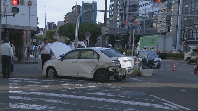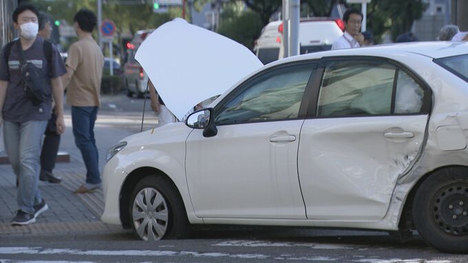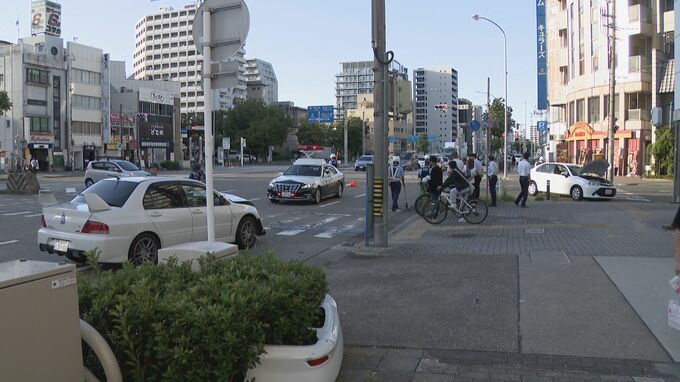 消防などによりますと、2日午後3時50分ごろ、名古屋市中区新栄にある信号交差点で、付近にいた人から事故を知らせる通報が消防にありました。