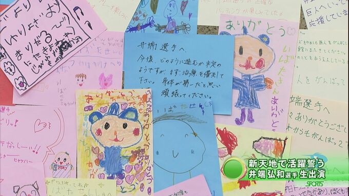 「毎年児童ホームに来てくださり、ありがとうございました。サインを快く書いていただき、そのサインの宝のように保育園に飾っています。これまで子どもたちへのたくさんの支援、本当にありがとうございます。担当の子どもと駐車場でキャッチボールしてくださったことを今でも印象深く覚えています。これからも、子どもたちに夢や希望を与えてくれる存在になってください」。