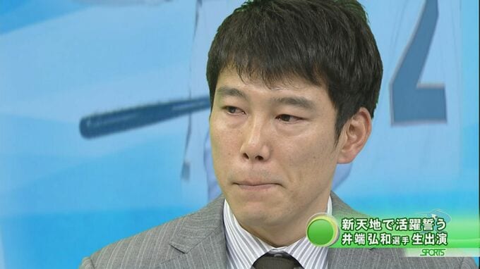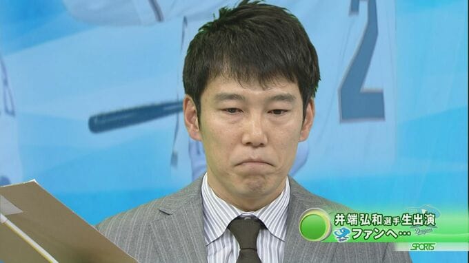 (目頭を熱くしながら、メッセージを聞く井端氏)