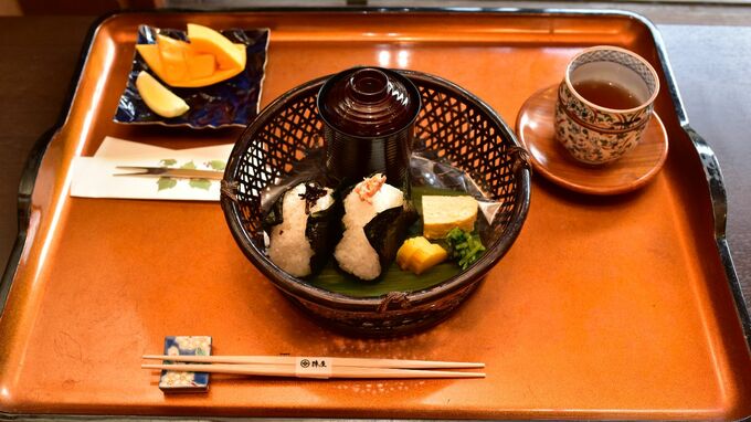 午後5時になると夕食の時間に。藤井七冠は軽くおにぎりとパパイヤ。一方、永瀬王座はなんと昼と同じ、「陣屋カレー」をまたリクエスト!