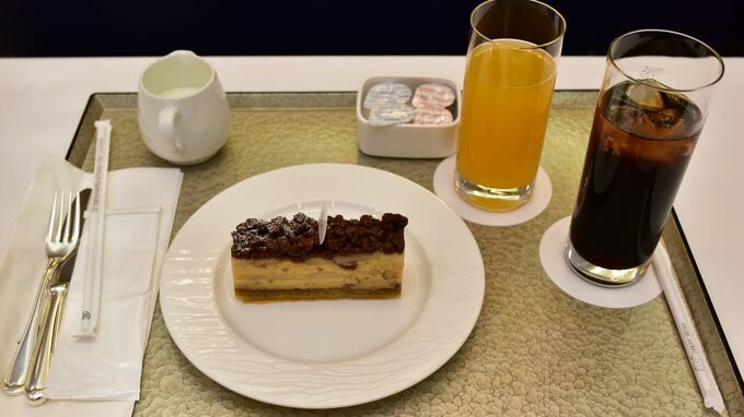 午後のおやつは藤井七冠が、りんごのコンポートとラムレーズンを使ったケーキ。永瀬王座はドリンクのみでした。