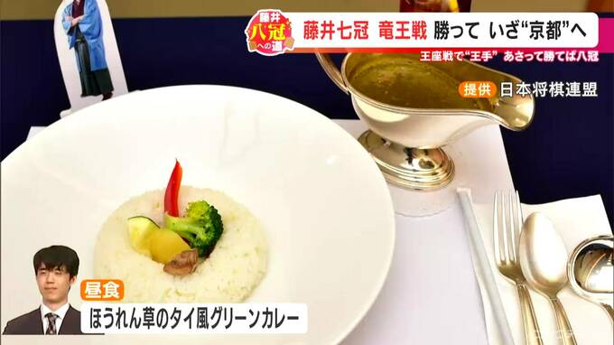 2日間にわたった対局中の勝負めしは…1日目、藤井七冠は「ほうれん草のタイ風グリーンカレー」、伊藤七段が「ボリュームたっぷりの牛丼」でした。
