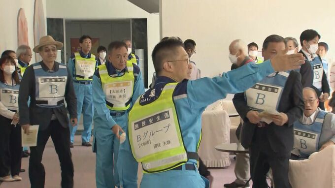 訓練では、放送で避難が呼びかけられ、参加者は窓から離れたり地下へ避難したりするなど、身を守るための行動手順を確認しました。