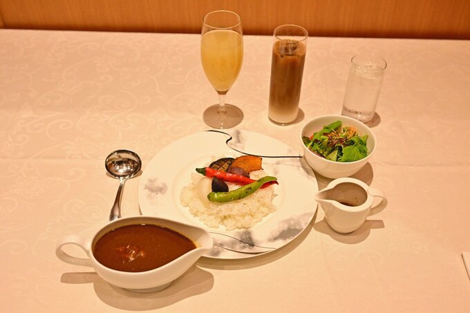 一方、“名誉王座”を目指す永瀬王座は「ビーフカレー温野菜添え(サラダつき)」とアイスカフェラテ、グレープフルーツジュースでした。