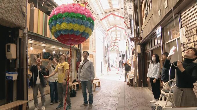 「午後3時すぎの瀬戸市内の商店街です。くす玉が準備されています」