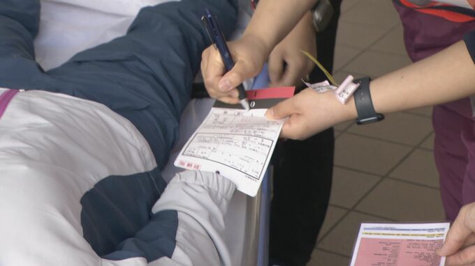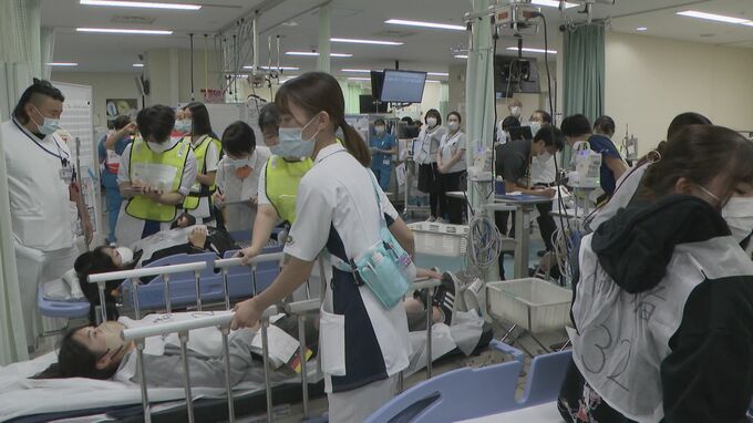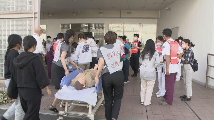 愛知県の災害拠点病院に指定されている名古屋掖済会病院で行われた11日の訓練は、震度6強の直下型地震が起き、多くのけが人が来院するという想定で行われ、約150人が参加しました。