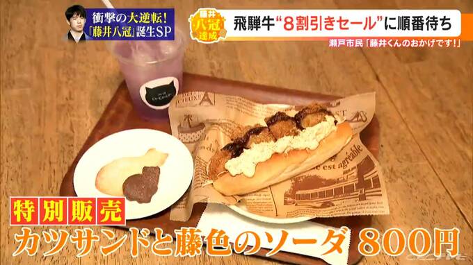 さらに、地元の商店街では、税込み450円のすいかジュースが「88円」に大幅プライスダウンされたり、藤井聡太八冠を祝福する特別メニュー「カツサンドと藤色のソーダ」を「800円」で特別販売したり…