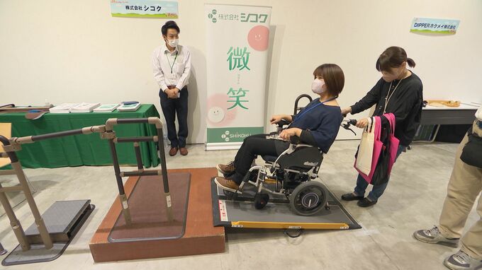 今回で5回目の開催となるこのイベントには、全国およそ30の企業が出展し、リクライニングができる車いすや、大きな音が出るのを抑えた電動カートのほか、いすに座ったまま昇り降りができる階段昇降機など、さまざまな福祉用具を実際に体験できます。