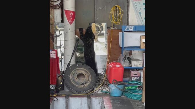 このガソリンスタンドでクマを目撃したのは初めてだったということです。
