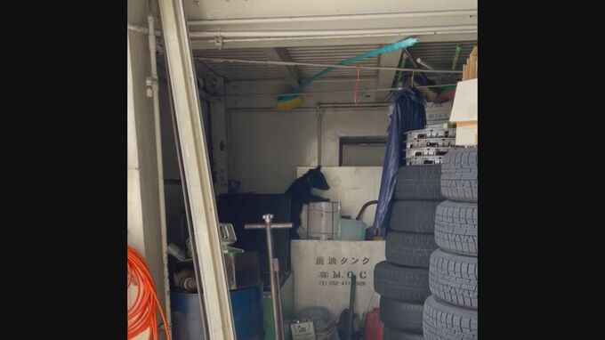 「『クマが侵入してきた。倉庫の中で暴れ回っている』という内容で通報。オイルエレメントが、ここに置いてある。それを落としていって、この空の缶もバラバラにした感じ」