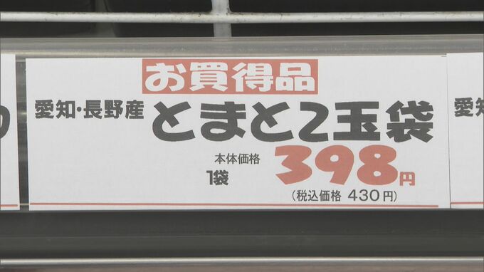 「こちらのスーパーではトマトが2個入りで税込み430円。ミニトマトも1パック税込み430円でかなり値段が高くなっています」