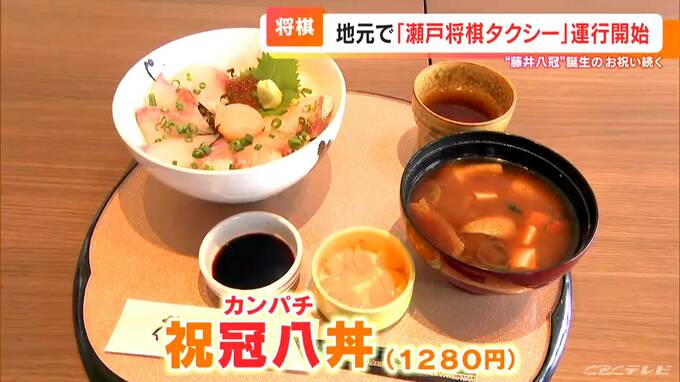 また市内のカフェ「瀬戸蔵カフェ花ごよみ」では、八冠達成を祝う新メニューカンパチの刺身が乗った「祝冠八丼(しゅくかんぱちどん)」(1280円)が売れ行き好調!八冠達成翌日の12日から19日までに、およそ330杯の注文があったといいます。