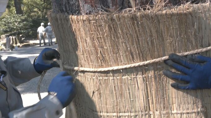 本格的な冬の到来を前に、松の木を害虫から守る「こも巻き」が10月24日、愛知県岡崎市で行われました。